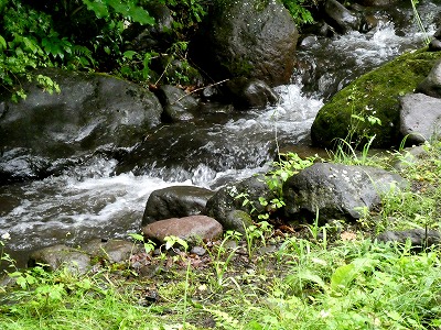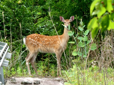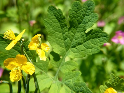 八ヶ岳自然ふれあいセンターから300m、ピンク色のテープに沿って山道を徒歩6分ほど歩いたところに「メコノプシスガーデン」がありました。