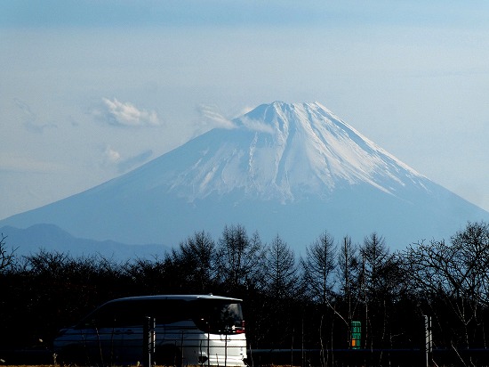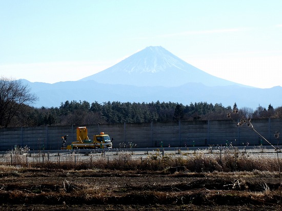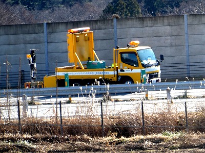 富士山の見える場所に、高速道路の作業車が停止していますた。特に事故のニュースもないので、除草作業でもしているのでしょうか?・・・