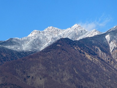日本第2の標高、北岳(3,193m)は雪の岩壁が望めました。