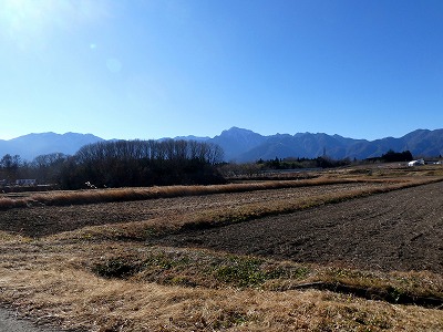 中央道近くの畑からも、存在感ある金峰山が望めました。