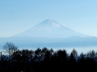 昼ごろの富士山は逆光で、雪の山肌はぼんやり写っています。