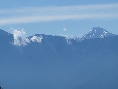 南アルプスも良く晴れていますが、逆光ぎみの、南アルプス山脈の写真です。