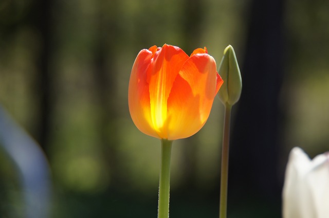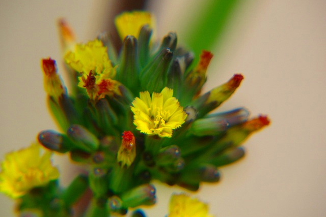 写真はツボミの緑と開きかけの赤、咲いた黄色と華