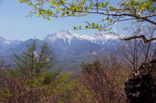 八ヶ岳はだいぶ雪解けが進み残雪と岩のコントラス