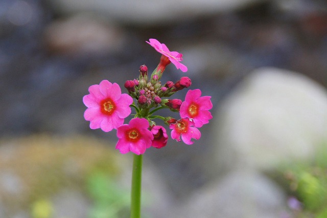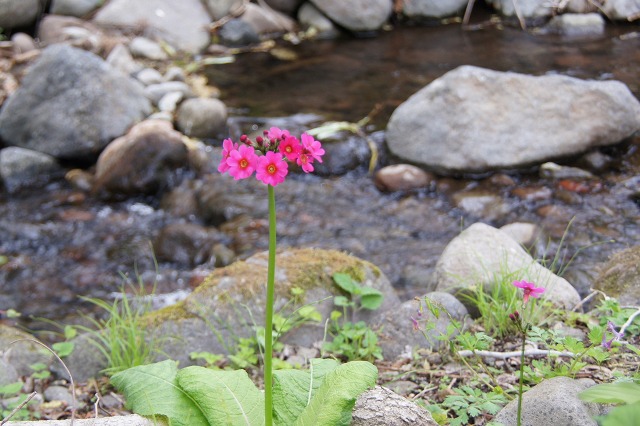 川岸に3年前に植えたクリンソウ、昨年台風で濁流