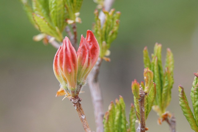 | 早いものでもう6月、クローズアップレンズ を持って美し森まで行って来ました。 若葉も多くなり、レンゲツツジのツボミもだ いぶ膨らんで来ました。 大きい画面の表示方法を変更して見まし たが如何でしょうか!! [ もう一枚見る !!] クリンソウの群生地は少しだけ咲いてい ましたが、柵が張られ私のズームレンズ では大きく写すことは出来ませんでした。 |