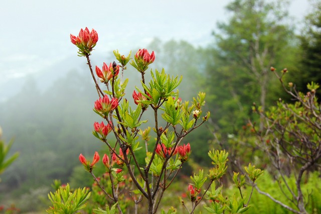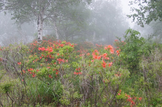 | 今日は天気が良くなりそうですね。でも 土曜日、混むと思い、昨日朝10時頃に なって空が明るくなり、急遽レンゲツツジと ベニバナイチヤクソウ(紅花一薬草)を撮り に家から50キロ程の八千穂高原に行って 来ました。 山岳道路に入ると霧で視界が悪くなり 慎重に車を走らせ何とかたどり着きました。 霧の中の写真も幻想的で良いものです ね。 [ もう一枚見る !!] 霧に霞む白樺とレンゲツツジ。 |
