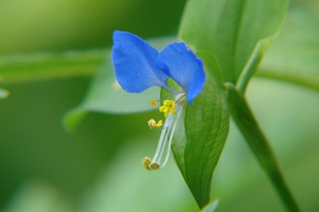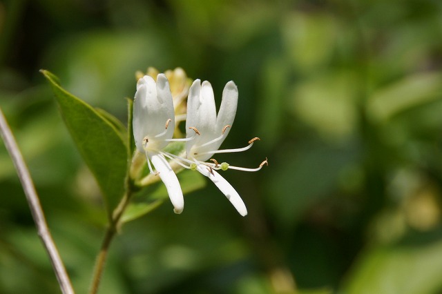 | 今日は敷地の外側を草刈りしていたら青 い二枚の特徴ある花びらと下に目立たない 白い一枚の花びらを付けた花が咲いていま した。 名前はツユクサ(露草)で朝、露があると きに咲き昼頃になるとつぼむようです。 [ もう一枚見る !!] 草むらの中に白い花を2箇ずつ付けてい る花が咲いていました。 名前はハマニンドウ(浜忍冬)、ネット図鑑 では暖地の海岸沿いの草地などに咲くとあ りますが、ここは標高900mでも咲いていま した。 |