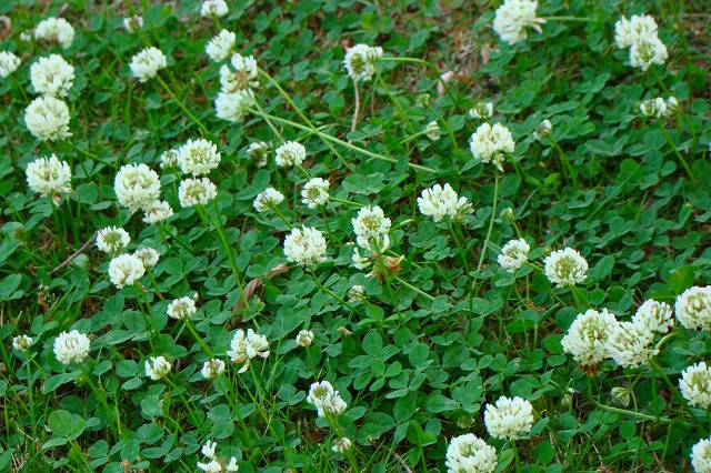 | 手入れを放棄した芝庭、今では芝刈り 機で刈るのは大変なので草刈り機でご まかしています。 芝と雑草の入り交じった庭にシロツメク サの花が咲きました。 今日初めて人工光による撮影に挑戦し てみました。 段ボール箱のカメラ側を適当に切り抜 き、単三1本の小さなLEDライトを前方 斜め45度から当てて、自然光を遮断し て撮ってみました。 [ もう一枚見る !!] 群生しているシロツメクサとは大げさ で、50センチ四方に咲いています。 |
