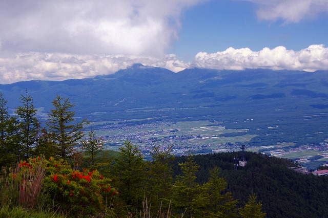 | 昨日は富士山の山開き、あいにくの悪天 候のようで八合目から、ちょこっと、ご来光 が拝めたようです。 今日、晴れていましたので私は家から20 キロ程の入笠山(1955m)に行って来まし た。 お昼頃頂上に着きましたが雲が多く山の 稜線は見えませんでしたが、ゴンドラ山頂 駅に戻ると八ヶ岳の稜線が見えていました。 [ もう一枚見る !!] 入笠山山頂より雲に覆われた蓼科山方 面を望む。 |