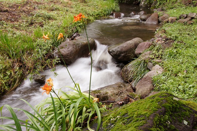 | 昨日からの雨で隣接の沢が増水していた ため写真を撮って見ましたが、手抜スロー シャターです。 普段から青空を強調するため殆どカメラに 取り付けたままのPL偏光フィルターで撮れ るか?試し撮り、しかも手持の撮影です。 ただシャッターを押した時にぶれるため2 秒のタイマーで撮ったのですが、Web写真 ならそれなりに写るものですね。 [ もう一枚見る !!] 我が家の庭にもゆりの花がが咲きました。 スポット測光で花だけに露出を合わせてい ます。 |