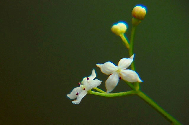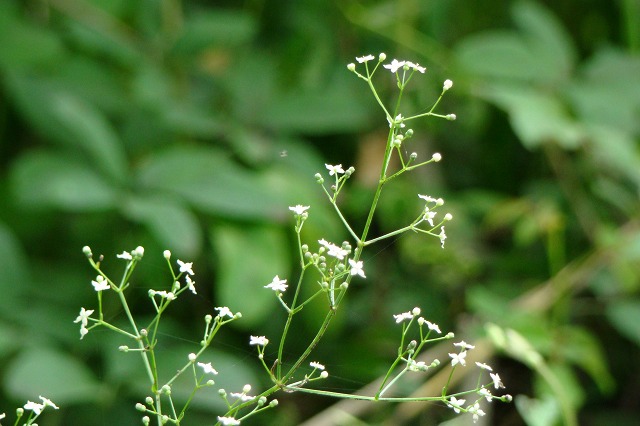 | 今日は雷雲の空模様、出掛けたくない ので敷地の外周りで撮ったことのない花 を探して見ました。 草丈30センチ程、白い花弁4枚、花径 3ミリの小さい花を沢山付けている株を 見つけました。 写真に撮って気がついたのですが花び らが肉厚ですね。 何時もは手持ちで撮っていますがどうし てもピントが合わないので、久し振りに三 脚にスライダーを付けて撮りました。 [ もう一枚見る !!] 花株全体の様子。 |