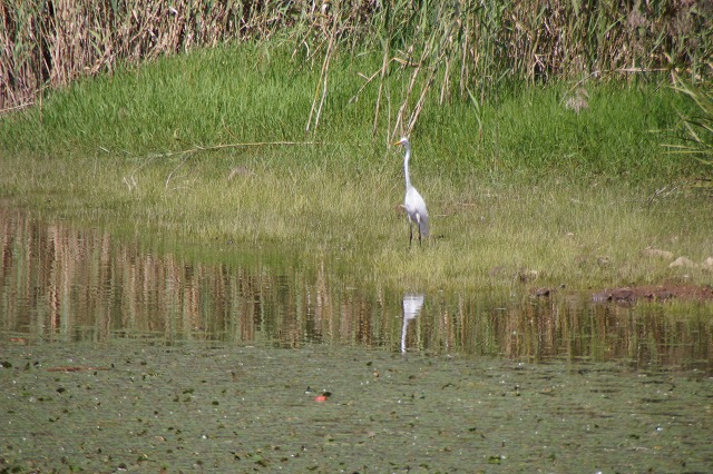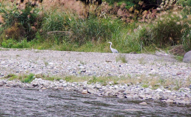 | 小淵沢ICからカーブの多い坂道を下りると甲州 街道に突き当たり、すぐに道の駅・信州蔦木宿 があります。 甲州街道と釜無川の間に造られたられた道の 駅は宿場町をイメージして造られ、温泉「つた の湯」や直売所などががあります。 [関連した写真 ] 道の駅の河原に下りて写した釜無川の一枚。 対岸の離れた位置に白い鳥が一羽。 遠くで良く分からないのですが足が長く、多分 「ソデグヅル」ではないでしょうか。 |