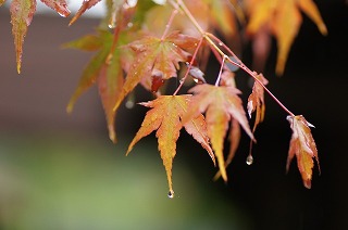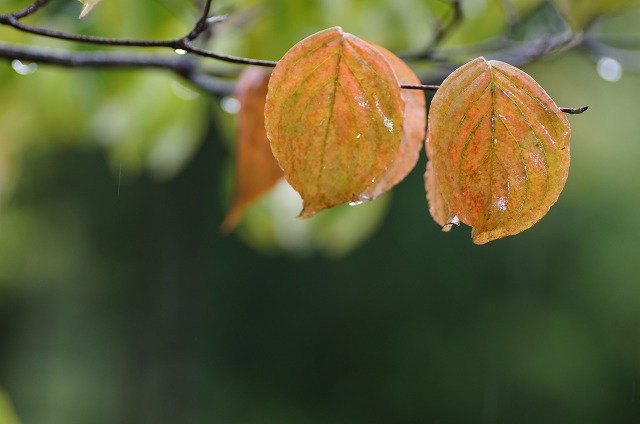 | 今日の天気は雨です。標高900mの我が家 の昼の気温が16度とちょっと寒くらいです。 写真は庭で色づき始めた葉っぱを撮って見ま した。 傘をさして片手のオート撮影、ピントはどうで しょうか。 [大きい写真 ] 1)水滴したたるモミジの葉。 フラッシュ発光 2白花ヤマボウシの葉。 フラッシュ発光 3)赤花ハナミズキの葉。 フラッシュ発光なし |
