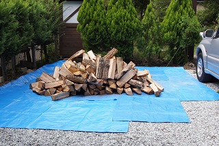 薪小屋まで台車が使えず手で持って運ぶのはきついですが、軽トラ 1台分を運び終え、後片付けを含めて3時間掛かりました。