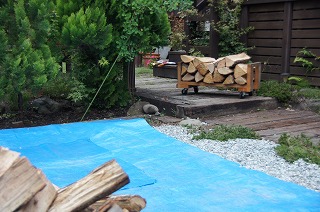 ここから薪小屋まで6mを手持ちで運ぶ。