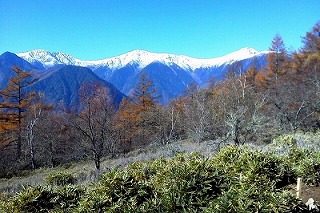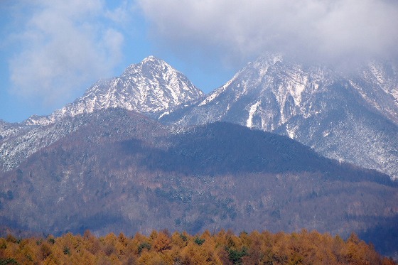 八ヶ岳の紅葉のそろそろ終わりに近づいて白い世界に