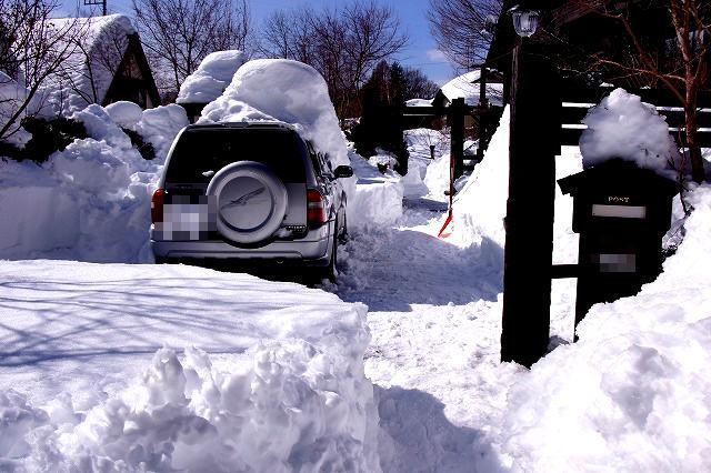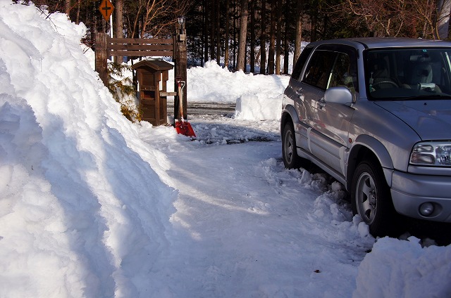 日陰に入ると雪のわだちが10センチ以上あり、車が