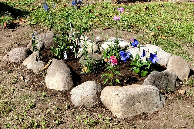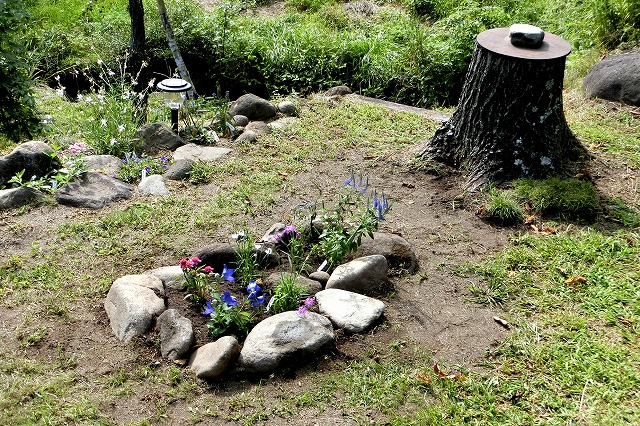 大木を伐採して周りに置いてあった大小の石で小さな花壇を