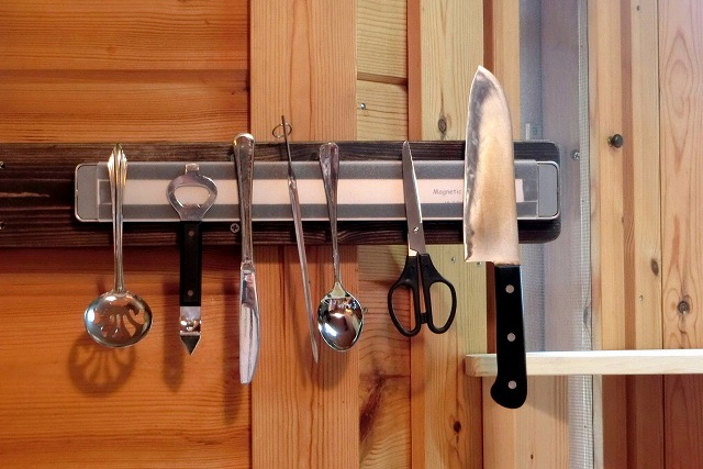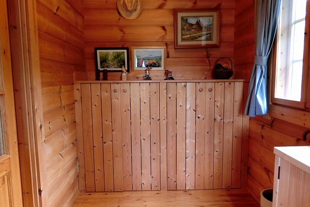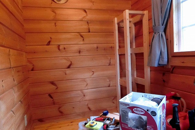 ミニログの軒下に作られた蜂の巣、川の斜面まで近く3mしか離れられず怖かった!