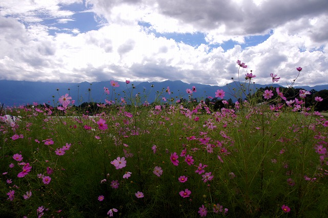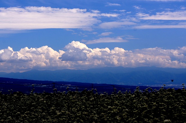 上空は晴れていますが、今日も八ヶ岳は雲に隠れています。