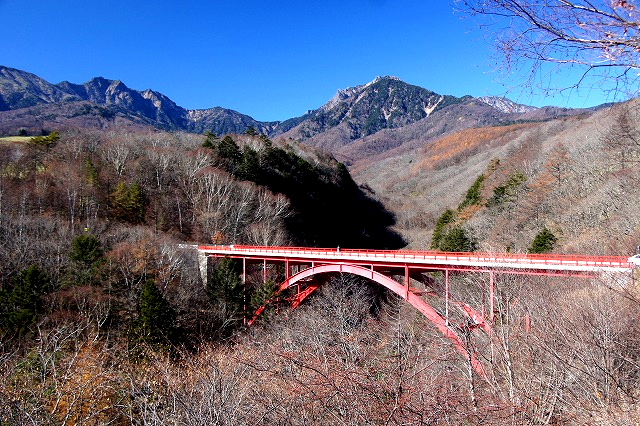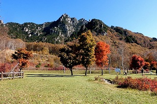 荒々しい瑞牆山の岩肌に周りの紅葉が美しく、見ごたえがあり