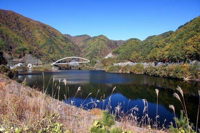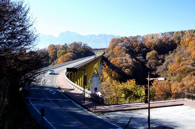 途中、みずがき湖(塩川ダム)の紅葉はまだ早いようでしたが、