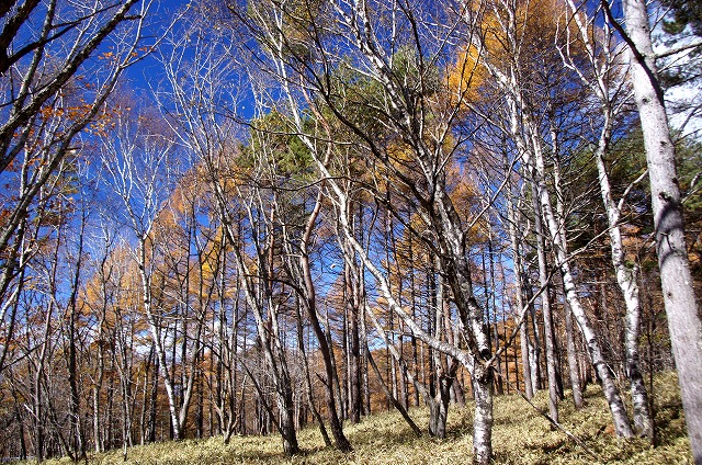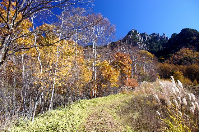 シラカバや自然の木々の紅葉が瑞牆山を引き立てていました。