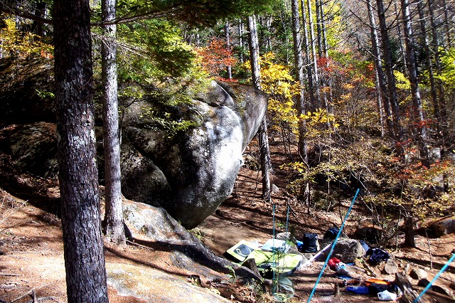 点在する3~5mの岩は、ボーダリングを楽しむ人たちが、マット