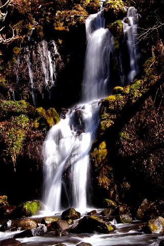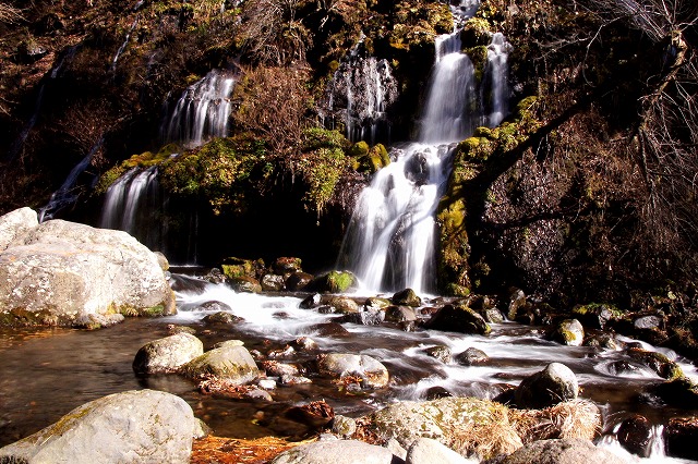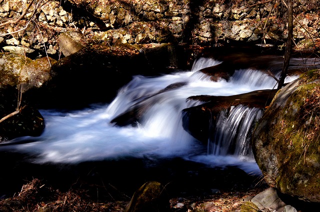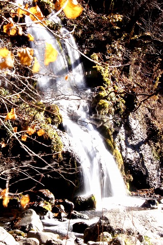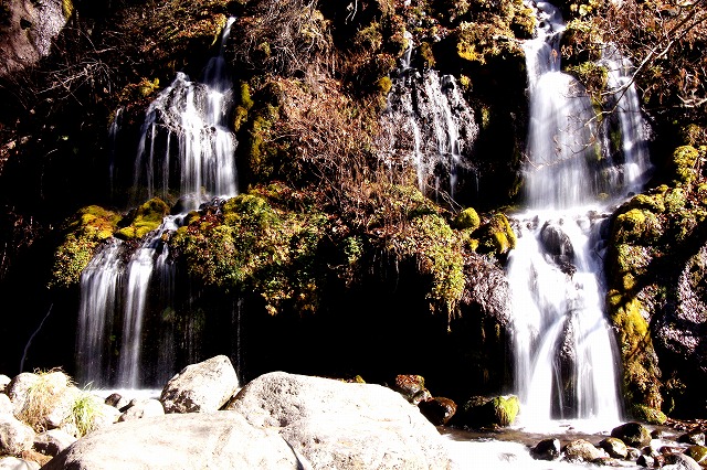 帰りは本谷川コースをとり増富ラジュウム温泉近くの渓谷は燃え