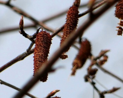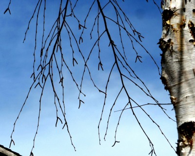 冬の白樺、落葉した枝だけのように見えますが、良く見ると2種類の