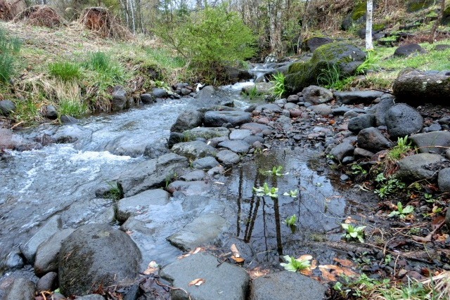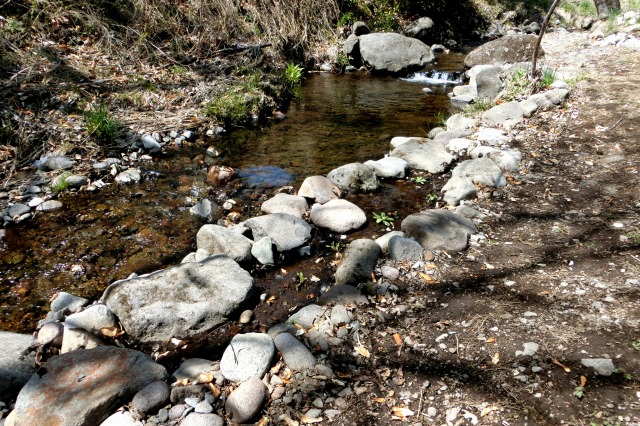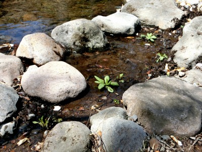 沢沿いに植えてあったクリンソウ、昨年の台風で土砂が覆い被さり