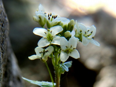 沢筋の斜面に小さな白い花が咲いていました。 初めて見た花です。 |