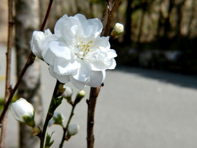 一見白い花桃に見えますが、「源平枝垂れ」のようです。ところどころ