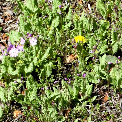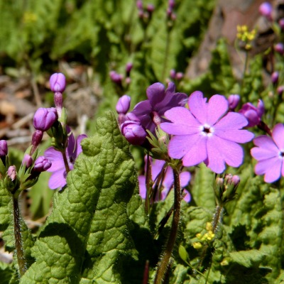蕾、花を橫から撮ってみました。 サクラソウが群落するほど増えました。 |