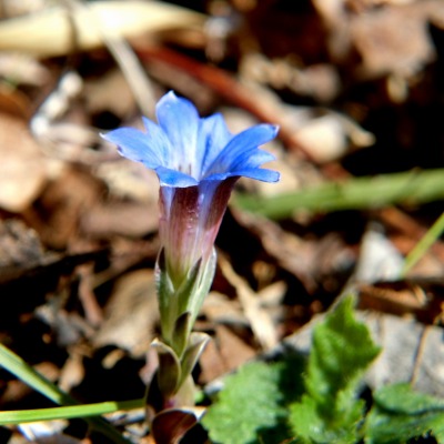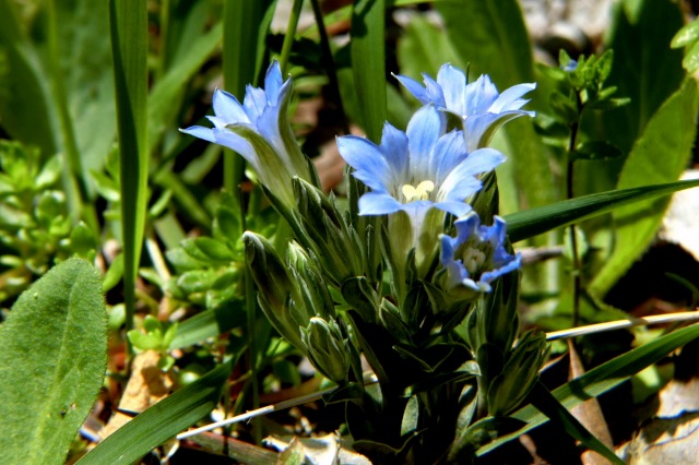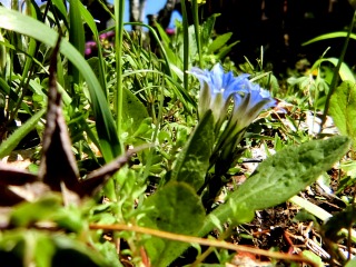 フデリンドウ、この時期晴れていると茎の先に複数個の青い花を付けて