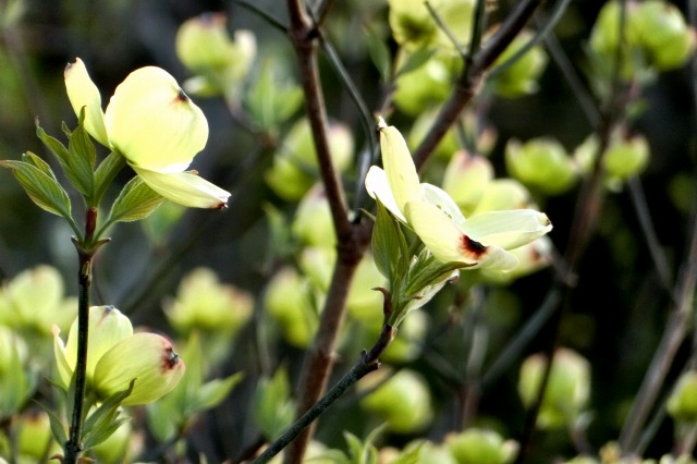 曇りの日は花がつぼんで垂れ下がってしまいます。 晴れていると元気いっぱい開いています。(3/30写) |