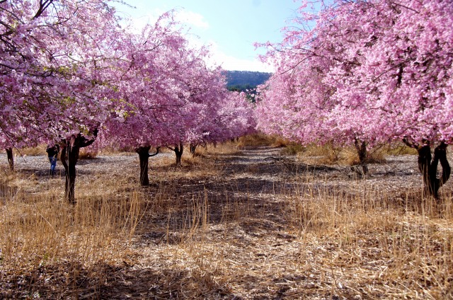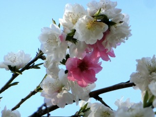 離れて見ると白い花桃のようです。 ところどころに咲くピンクの花です。 |