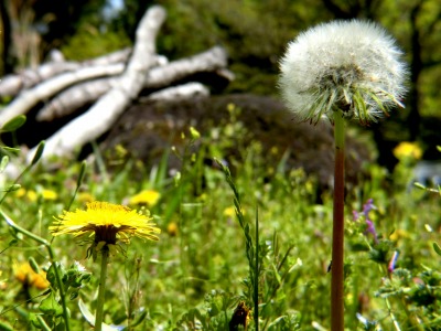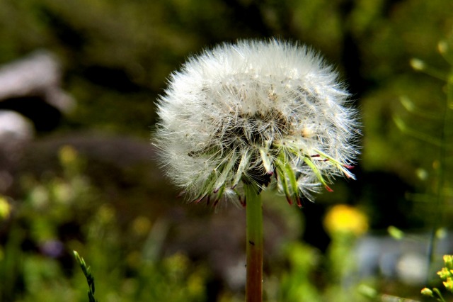 黄色いタンポポが、白い球状になりタネが飛んで行きます。