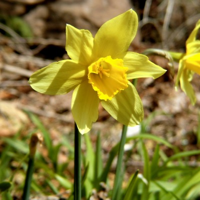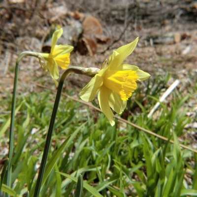春遅い北杜市ですが、伐採した日当たりの良いところにスイセンが、