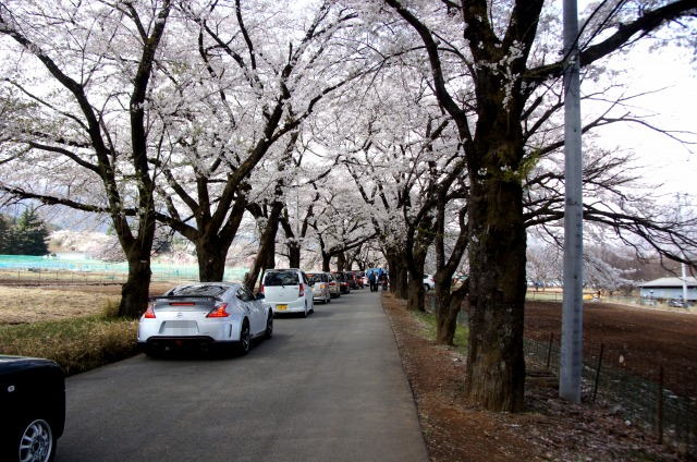 今日は日曜日、桜の並木通りは駐車待ちの車で渋滞しています。