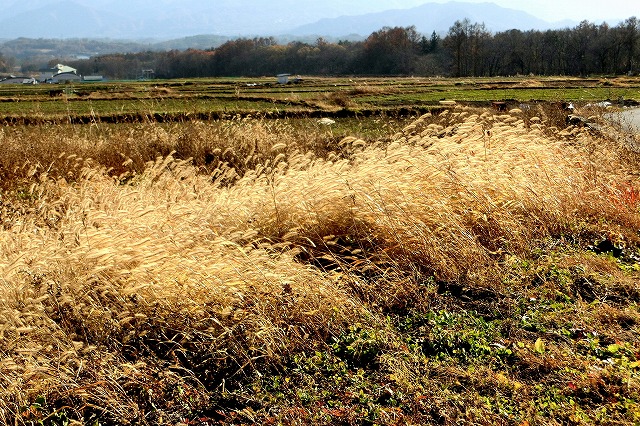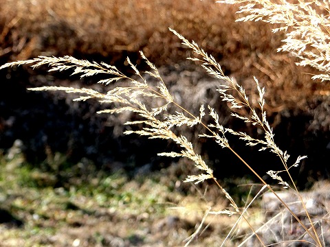 午後から風が強くなり冬枯れのエノコグサがなびいています。