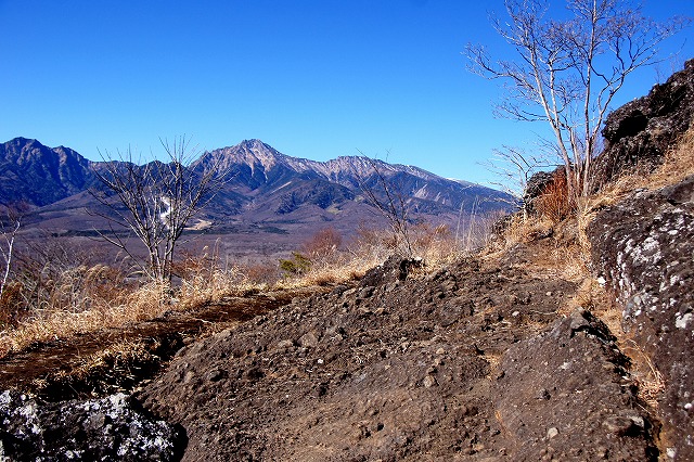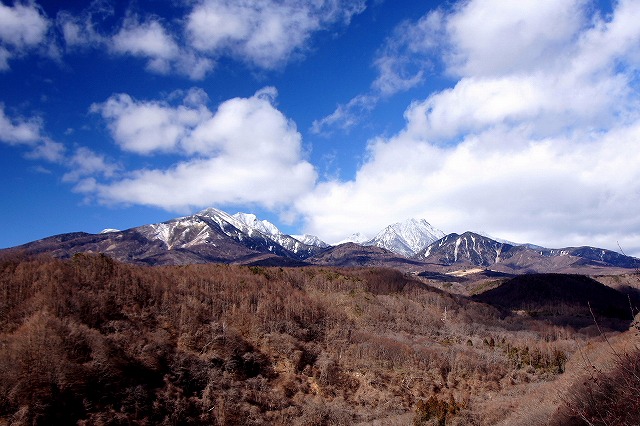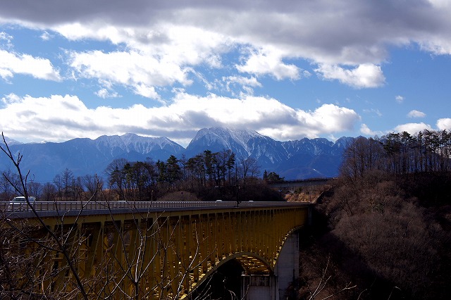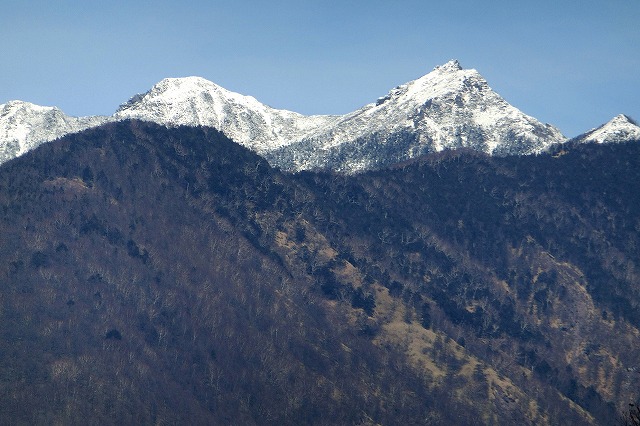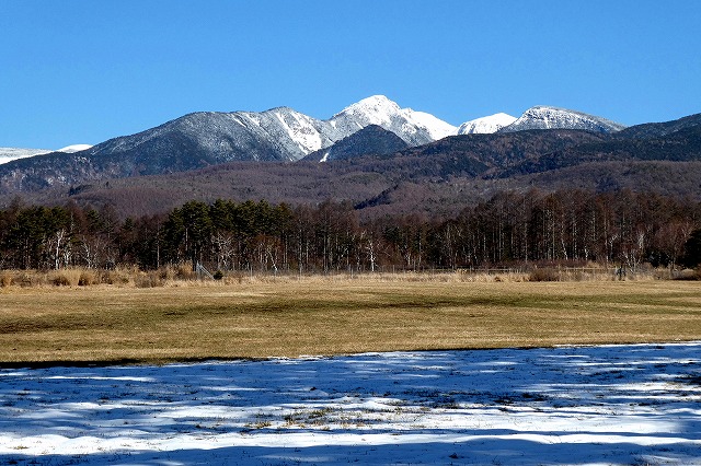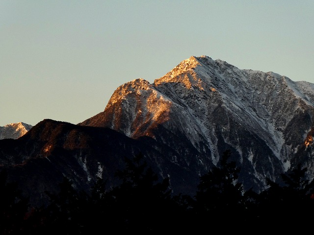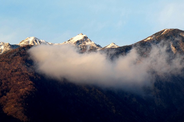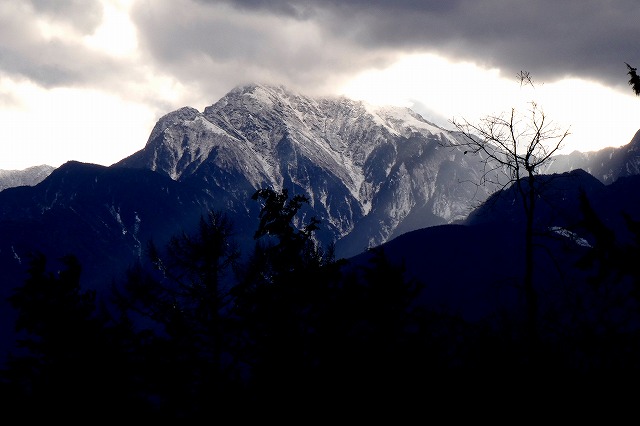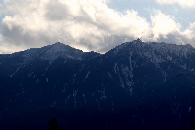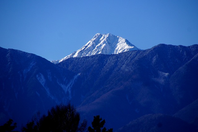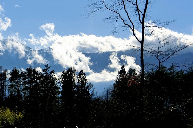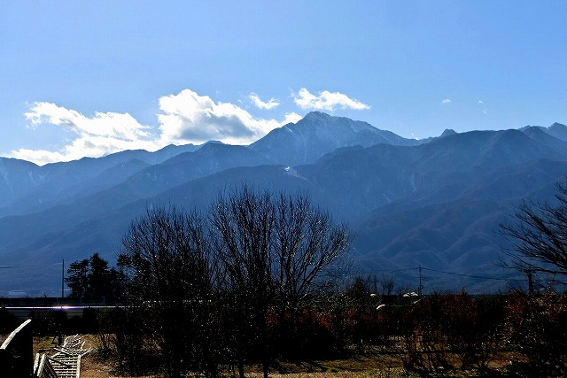 午後は逆光の南アルプス、この写真からは甲斐駒の積雪は分りません。
