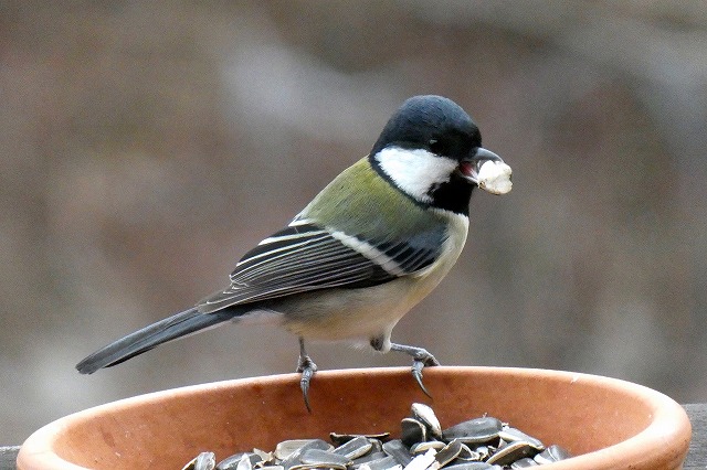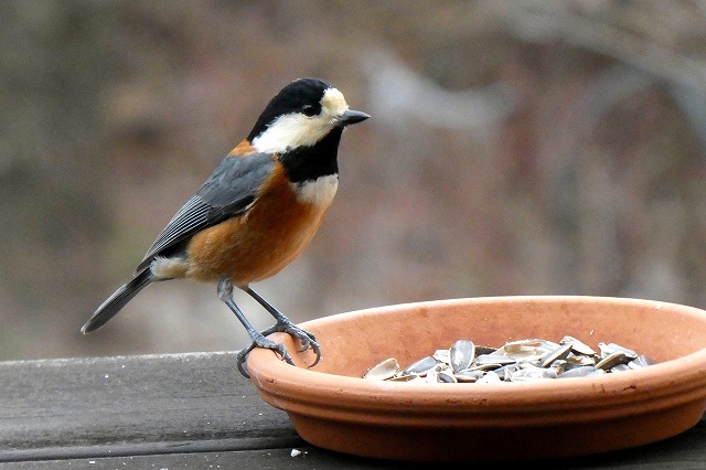曇り空で大した写真はありませんが、エサ場に置いたヒマワリの種に野鳥