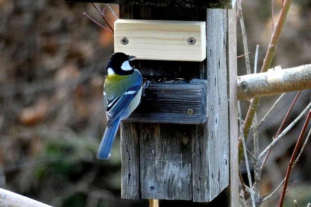 エサ場にやって来た「シジュウカラ」。エサはこの場所では食べずに近くの