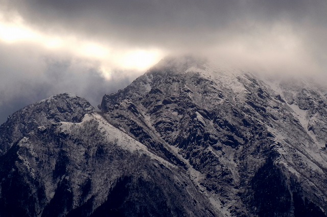 甲斐駒に厚い雲が追いかぶさろうとしています。