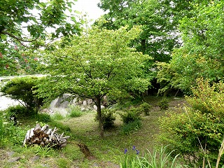 きれいな十字の花びらのように見えるのは総苞片です。 ヤマボウシの木が大きくなりました。 |