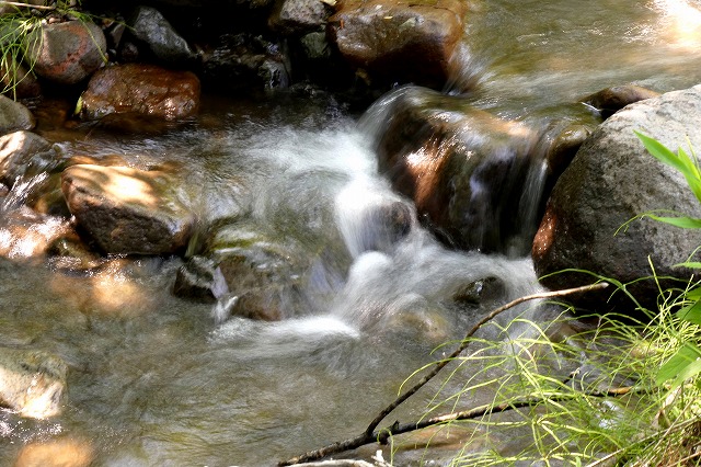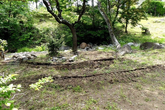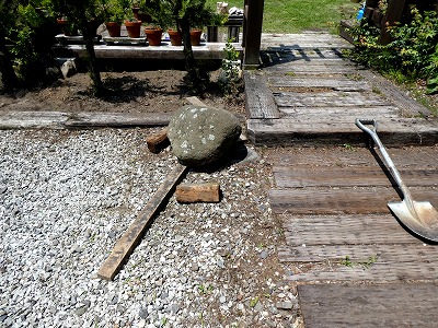 中央の大きな石は昨年の台風で流されて来たままで動かすことが出来ません。 |