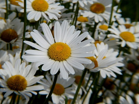 最近キク科のこのような花をよく見かけます。 葉がへら状は「フランスギク」 |