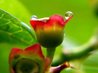紅色をした5枚の花びらがきれいに咲き始めました。